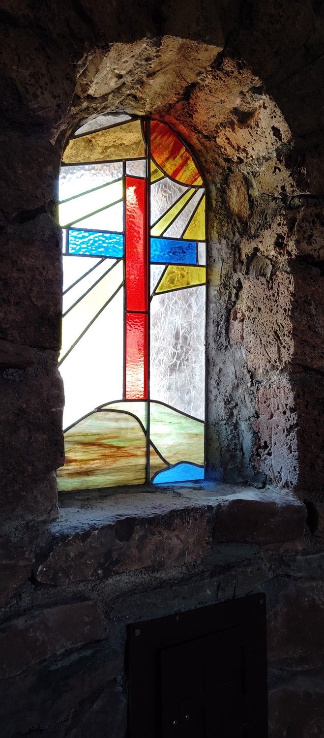 Vitrail oculus par Claudette assistée de Chantal, clocher-mur